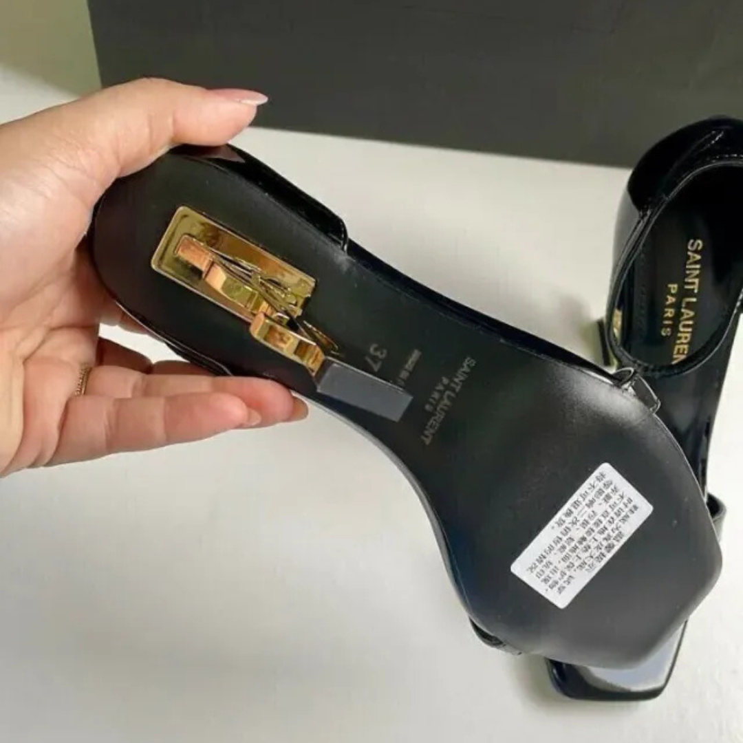DIE SAINT LAURENT OPYUM SANDALETTEN SIND EIN STILISTISCHES HIGHLIGHT MIT DEM IKONISCHEN YSL-ABSATZ. GEFERTIGT AUS GLÄNZENDEM LACKLEDER, VEREINEN SIE MODERNES DESIGN UND LUXURIÖSE HANDWERKSKUNST.